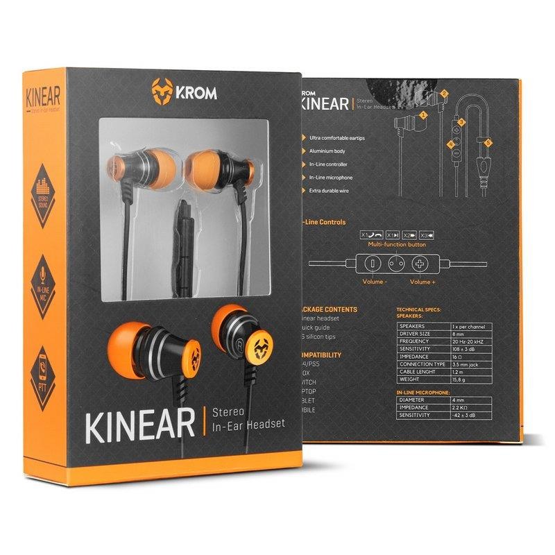 Krom Kinear son unos ergonómicos auriculares in ear con una alta compatibilidad que ofrecen una excelente calidad de sonido envolvente y cuyo micrófono integrado y control permiten realizar llamadas telefónicas o jugar con gran fluidez. Construido en metal, estos auriculares con cable son perfectos para todo tipo de dispositivos, muy fáciles de utilizar, ofrecen una gran durabilidad.