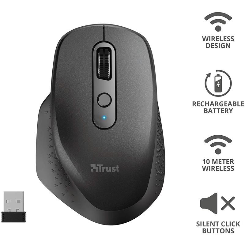 RATON TRUST OZAA ERGONOMICO RECARGABLE WIRELESS BLACK