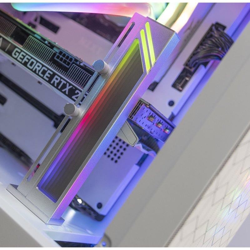 - ILUMINACIÓN ARGB INFINITY MIRROR. El sistema de iluminación ARGB infinity mirror del soporte para GPU es una auténtica revolución en diseño en hardware de PC. Este soporte no solo proporciona una base firme para tu tarjeta gráfica, sino que eleva estéticamente tu configuración con su deslumbrante efecto de profundidad. El efecto visual único del infinity mirror añade una impresionante dimensión de luz, ideal para los entusiastas del PC que buscan añadir un elemento distintivo en sus montajes.