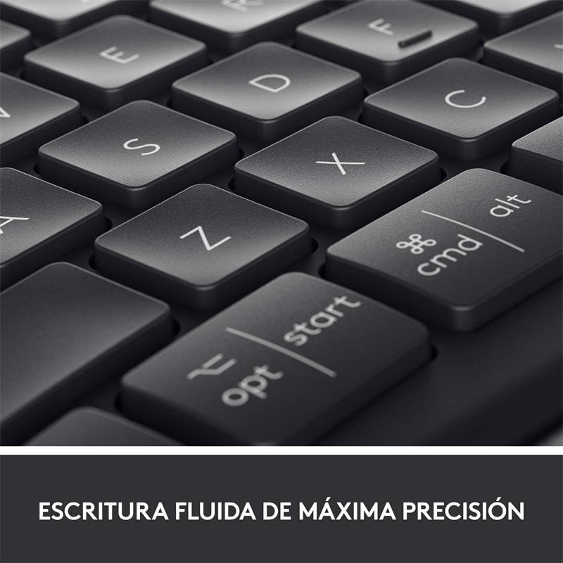 • Teclas Perfect Stroke: teclas de punta que se adaptan a la forma de las yemas para que puedas escribir con confianza en un teclado inalámbrico diseñado para la comodidad, la precisión y la fluidez.